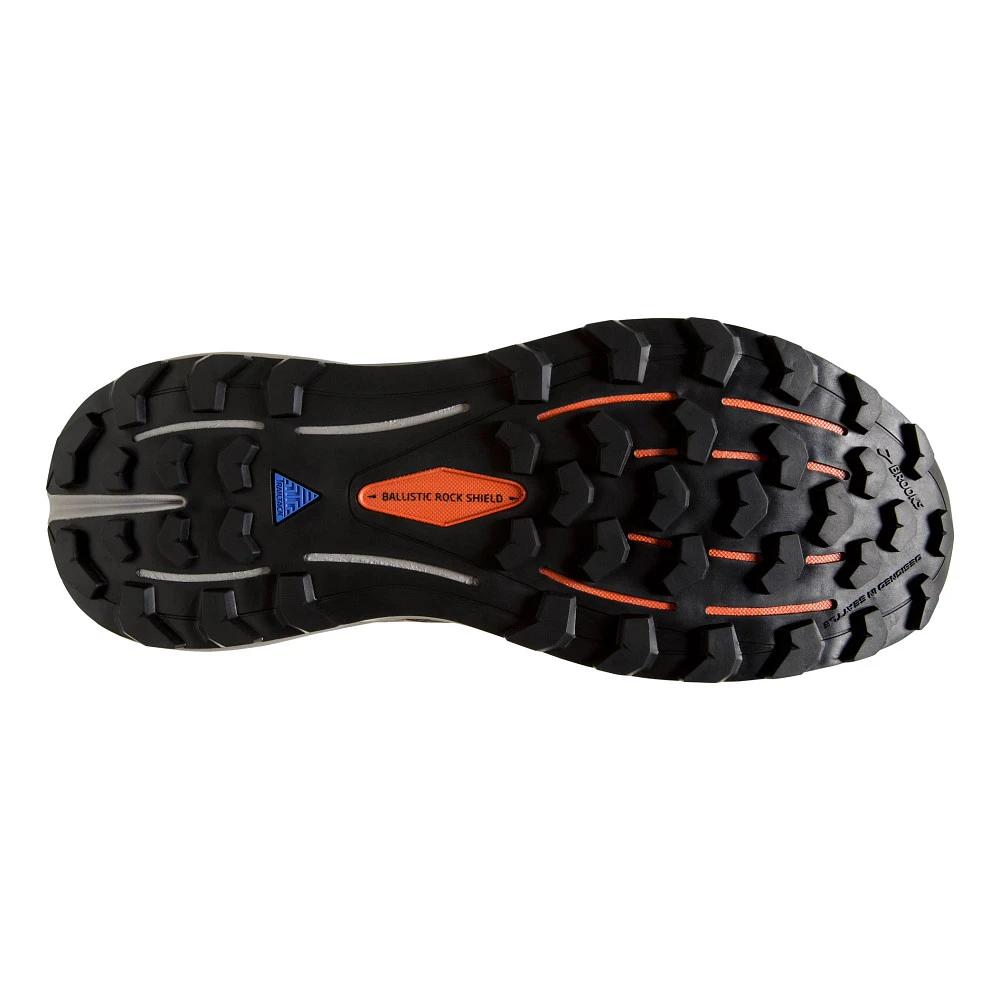 Men’s BROOKS® CASCADIA 16 GTX :: Bring on the wet trails in your Men’s Brooks Cascadia 16 GTX trail running shoes. This version gives you a GORE-TEX® upper for waterproofed protection that keeps feet warm and dry. You’ll also love DNA Loft v2 cushioning that’s 5% softer and 20% lighter than last year. The updated Ballistic Rock Shield protects against pebbles and debris underfoot while remaining flexible for uneven terrain. Trust serious traction with the grippy TrailTack outsole grabbing through both wet and dry conditions. With water drainage, lace keepers and protective mudguards, you’re ready for anything with your Cascadia 16 GTX.