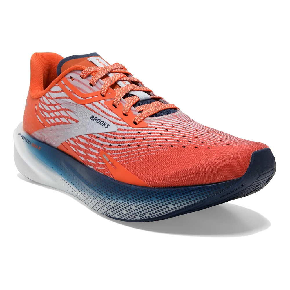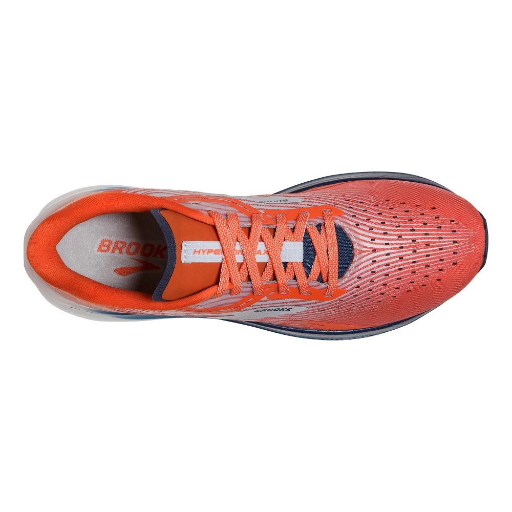Men’s BROOKS® HYPERION MAX :: This running shoe is an endorphin hit! Built for speed like you’ve never felt before, your Men’s Brooks Hyperion Max offers a triple threat you can’t resist. Nitrogen infused DNA flash cushioning is dense, adaptive, and ultra-lightweight, helping you recover with each stride. Rapid Roll technology with a heel to toe curve, literally launches you forward for more efficient turnover. And a stretch woven upper gives you amazing breathability as you fly. Your Hyperion Max cracked the code and is helping you experience a faster, more enjoyable run.
