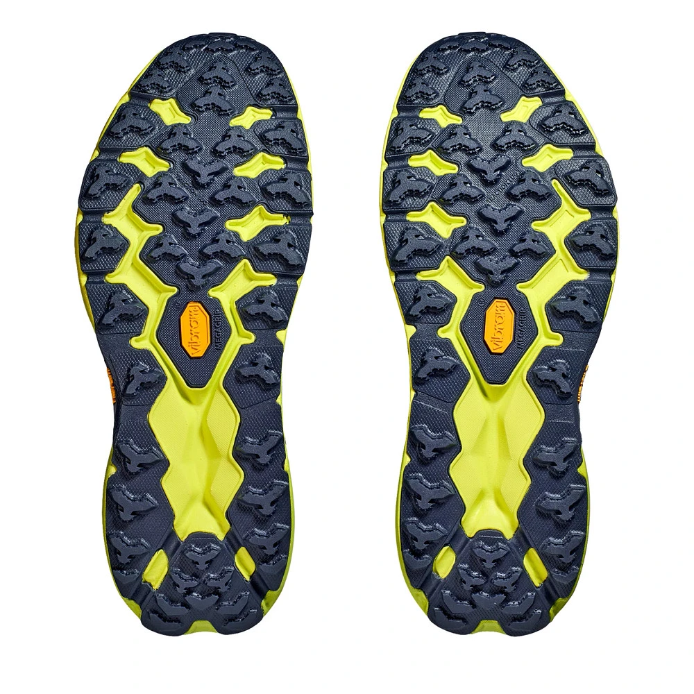 Men’s HOKA® SPEEDGOAT 5 :: This trail running shoe is the GOAT. Your Men’s HOKA Speedgoat 5 is everything you love about last year’s model, but leveled up. HOKA trimmed 1/2 of an ounce off the weight for a lighter, quicker ride and gave this trail beast Vibram® Megagrip with Traction Lugs so you maintain speed even on loose soil. Retaining the same stack height and Meta-Rocker profile, the Speedgoat 5 employs a lighter midsole and heartier, double layer vegan mesh upper to inspire your confidence as you charge towards the hills.