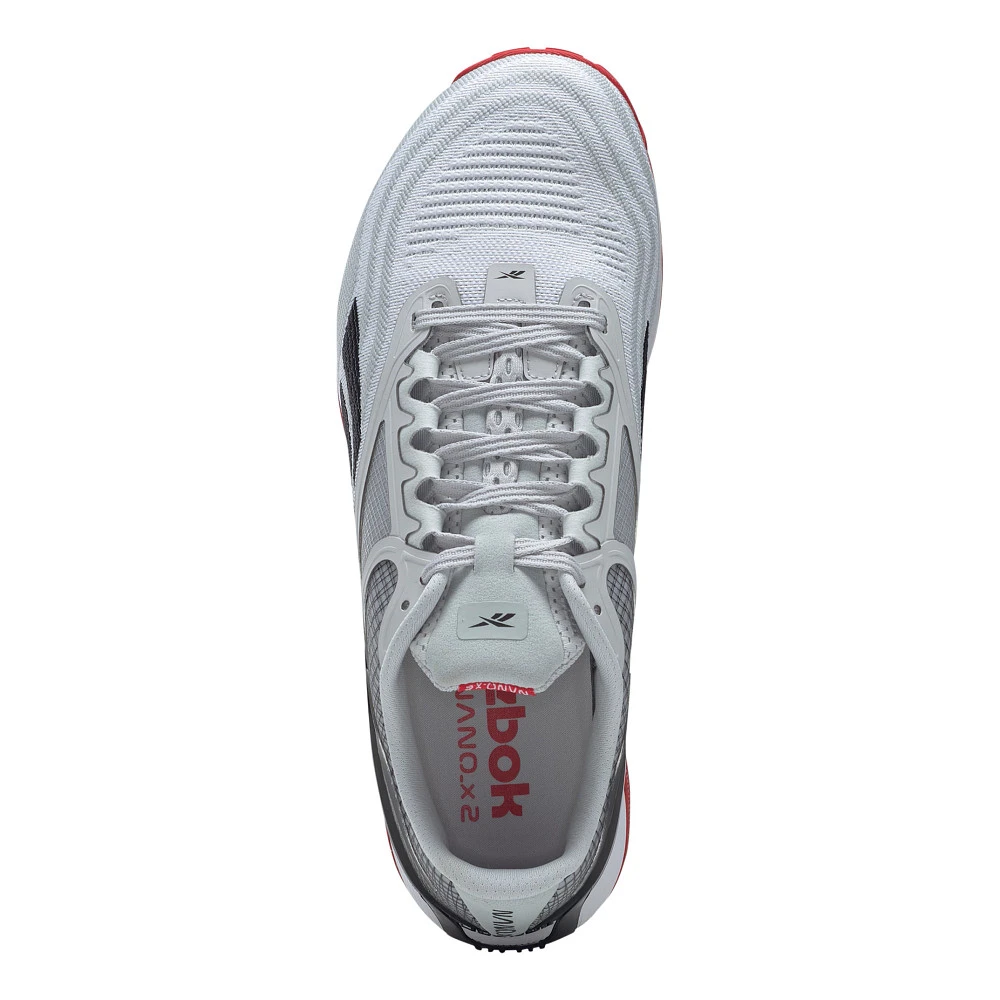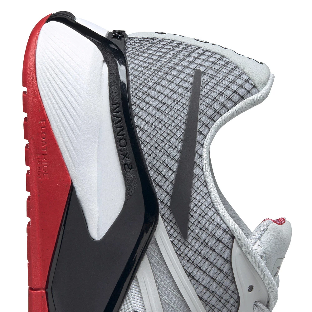 Men’s REEBOK® NANO X2 :: Back with a vengeance. Your updated Men’s Reebok Nano X2 cross training shoes conquer drills while keeping your foot cool and protected with an all new durable Flexweave knit upper. Updates in the heel cup offer a sleeker shape than the first go around and you’ll feel the stability difference in step with a slimmer fit. Ultra-energized Floatride cushion in the forefoot of the Nano X2 ensures that when you hit your next WOD challenge, you’re in for an extra lightweight and ultra-responsive ride.