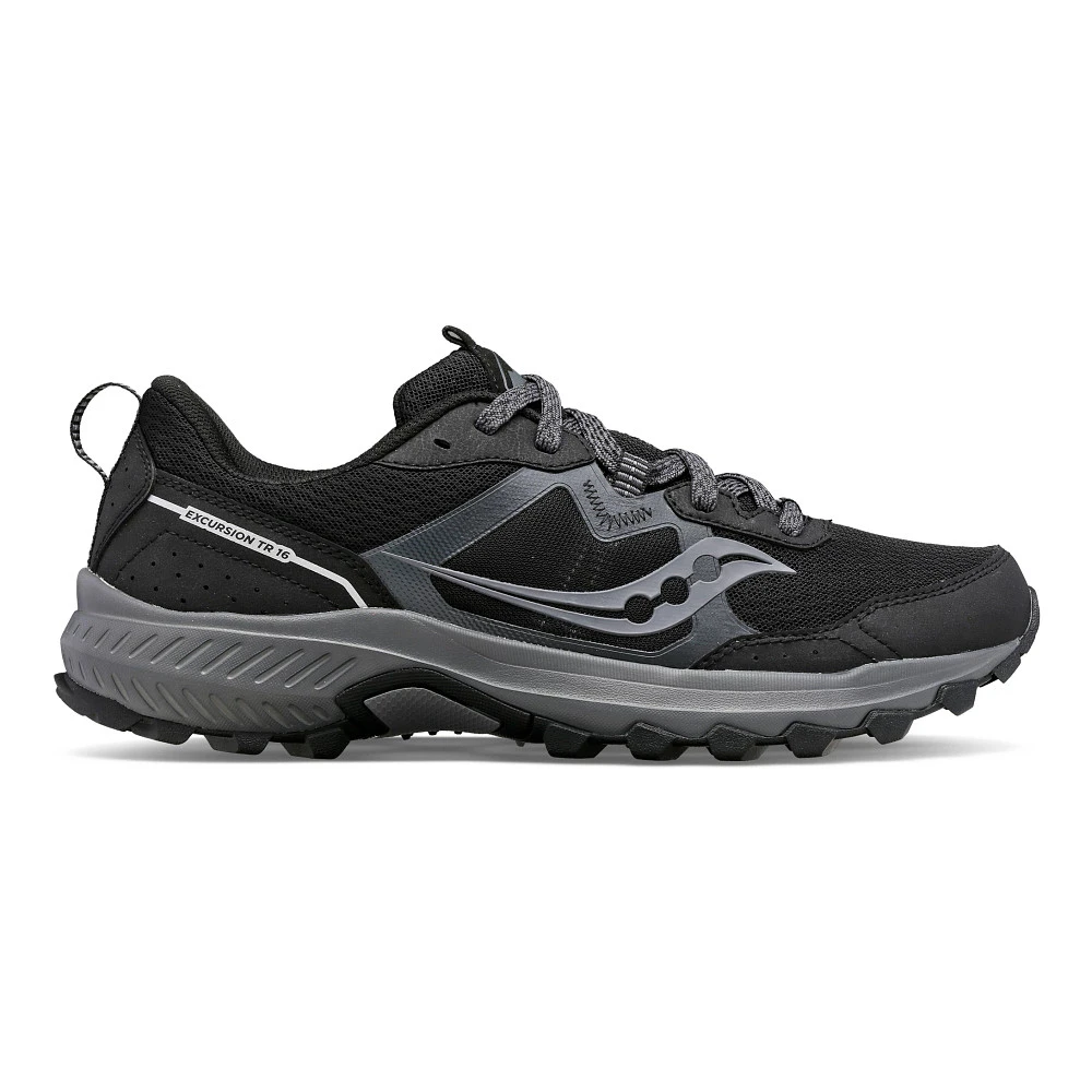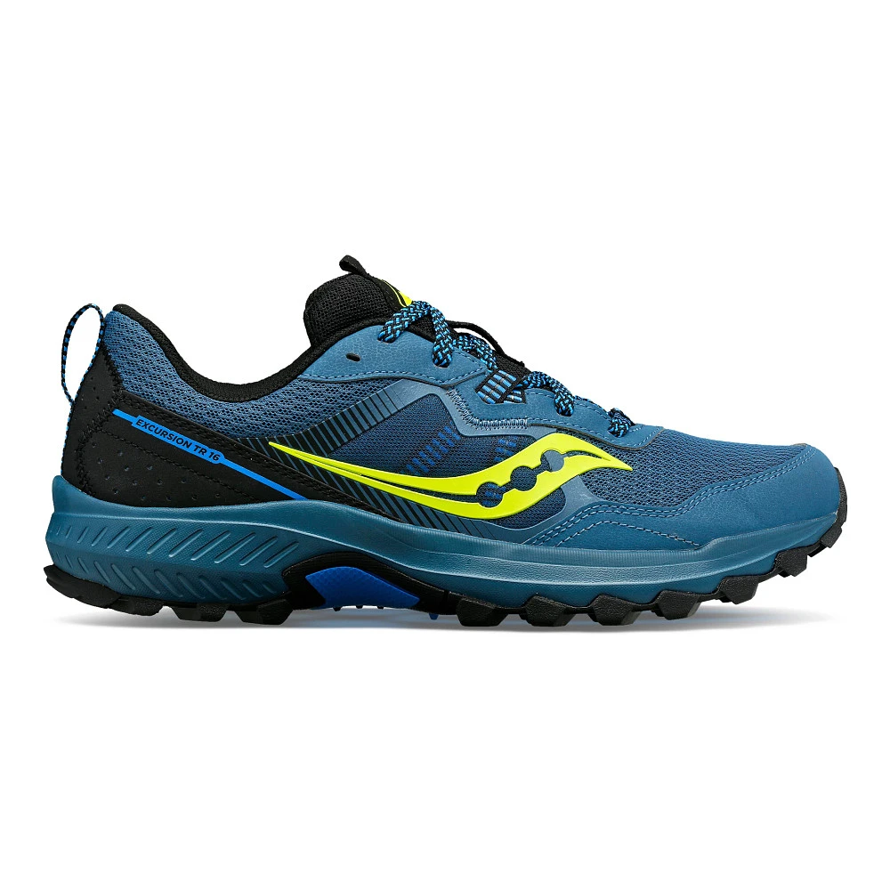 Men’s Saucony® Excursion TR16 :: Meet your all-around trail runner. An outdoor essential that’s capable of taking you farther, the Excursion TR 16 is up for anything. Springy and comfortable, it’s designed with traction-ready grip that hugs any terrain you throw at it. Don’t stop now.