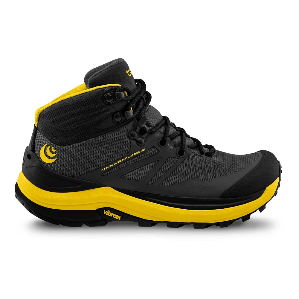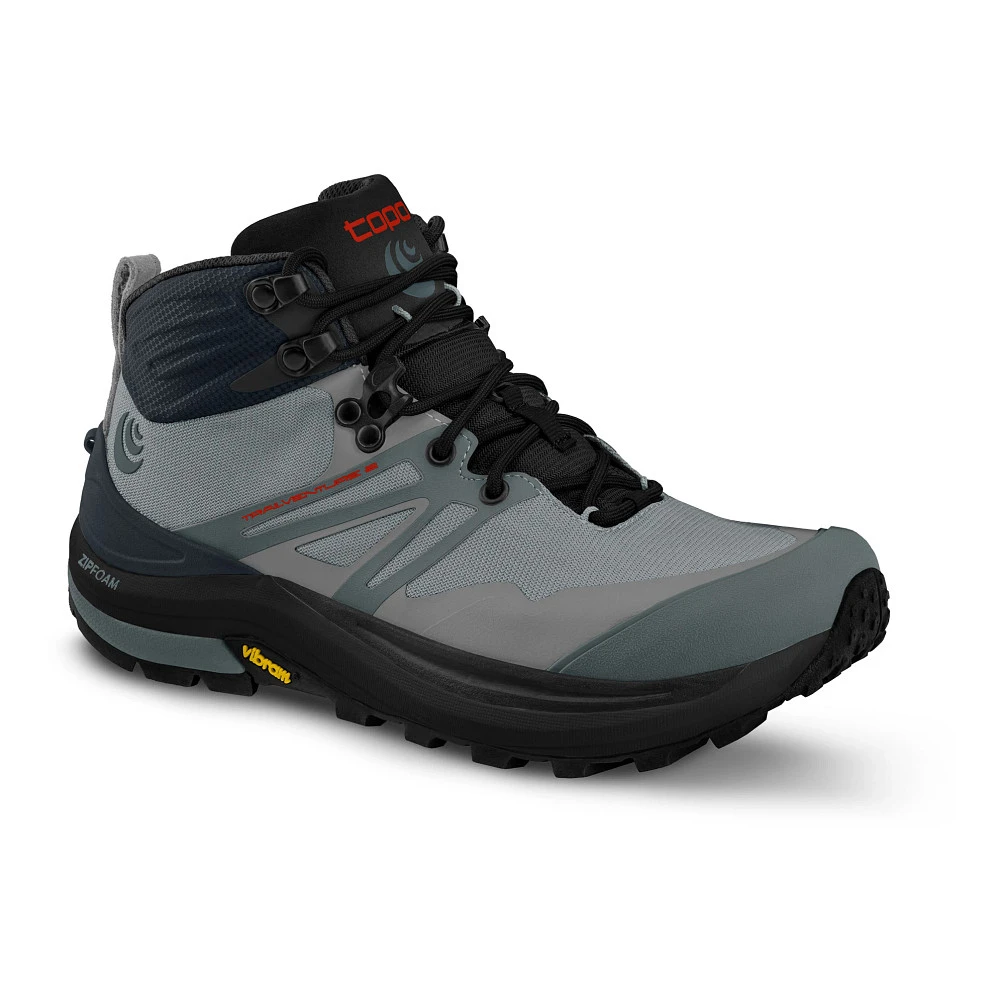 Men’s Topo® Trailventure 2 :: A lightweight and cushioned hiking boot built for day trips and thru hikes, featuring Topo’s signature roomy toe box with a secure midfoot and heel. The durable mesh upper offers a breathable fit, while medial drainage ports allow for quick water release and drying. The cushioned 33 x 28 mm platform features an external TPU heel counter and a ZipFoam™ midsole for a stable and comfortable fit. The Vibram® XS Trek EVO outsole provides superior multi-surface traction and durability on all terrain.